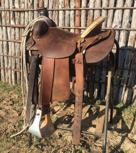 15inch Handmade by Durazo saddlery in Douglas Arizona. Stamped #211. Very nice shape. Heavy leather that’s been well kept and oiled. Saddle rides very good and fits horses even better. Stout in every way.
