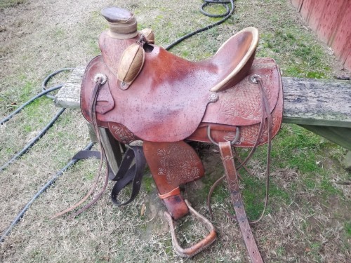 This is a nice saddle in great shape with plenty of life left. Used but not abused. It has a 16 inch seat, 3/4 inch stainless double rigging with oak tooling on skirts and fenders, and a post horn. Gullet width is 5 inches-so the saddle fits best on higher withered horses. Comes ready to ride. Asking $2,300, can ship anywhere in the Continental United States Can send more pictures upon request. Please contact me for additional information.