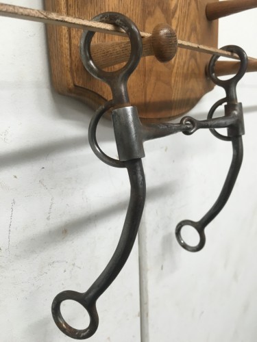 Bit marked LYNES 97.30 and made by Vernon Lynes of Canada. He has been in the business for several deacades and makes quality bits. This bit has a lot of cratsmanship and features copper inlays in the 5 1/16" mouth and 7 7/8" cheeks. Much refinement in the mouth piece. In very good condition. We pay shipping within the 48 states. We accept most credit cards, Pay Pal, money order, or check.