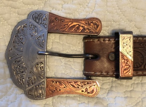 Hurley Hughes belt buckle with keeper. Both buckle and keeper r mtd with silver and copper nice made buckle for 1 1/2” belt. Askin $150 shipped to u n lower 48. PLEASE TEXT OR CALL. NO EMAILS. THANK U