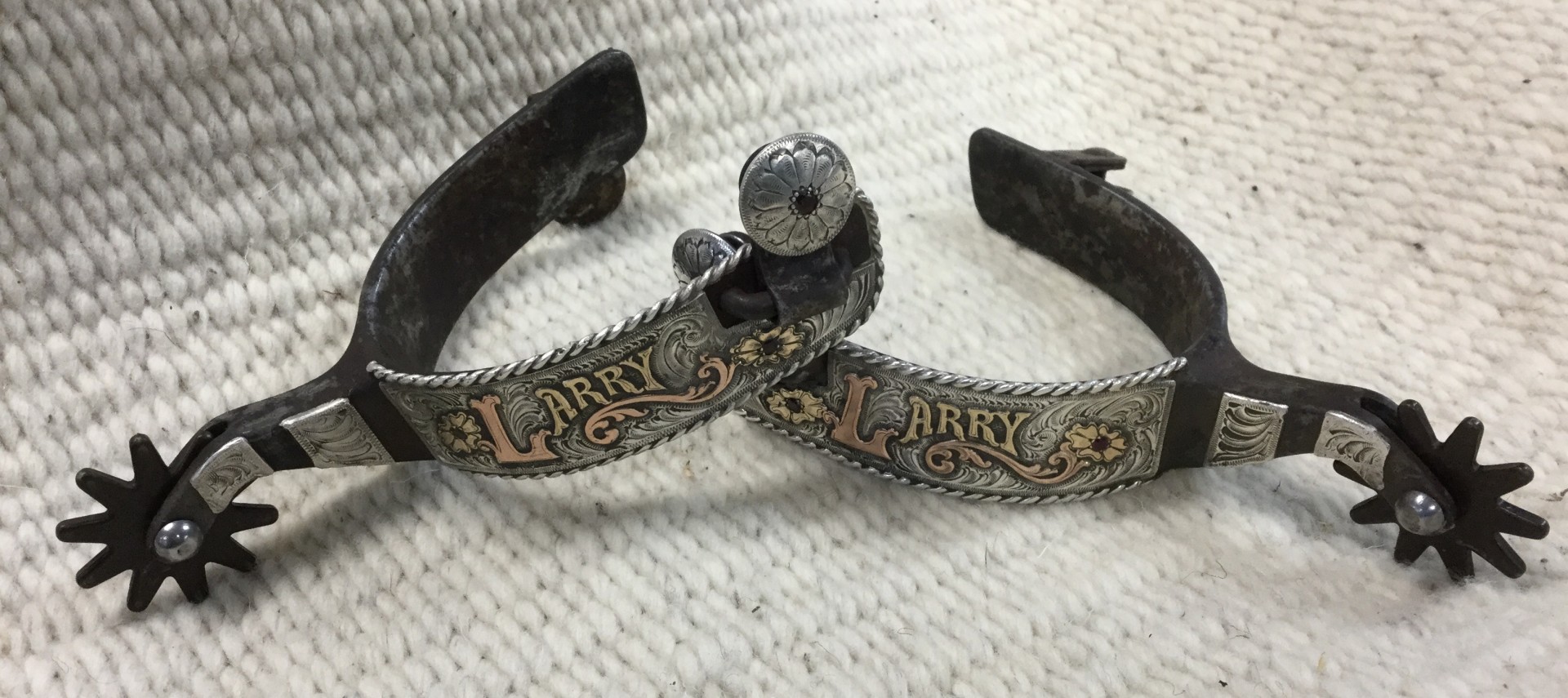 Maker marked Gordon Hayes Spurs built for NCHA Hall of Fame Rider Larry Reeder $475