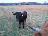 Full blood yearling corriente bull for sale. Black with patch of white on belly. Excellent horn base...