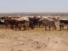 Mixed group of Corriente cattle that have been lightly roped. All of these cattle have great horn, are...