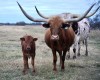 1 Reg Longhorn w/calf Steer, (Cow - $1200 + $700 for calf) $1900 for pair 1 Reg Long Horn BULL (Abbie...